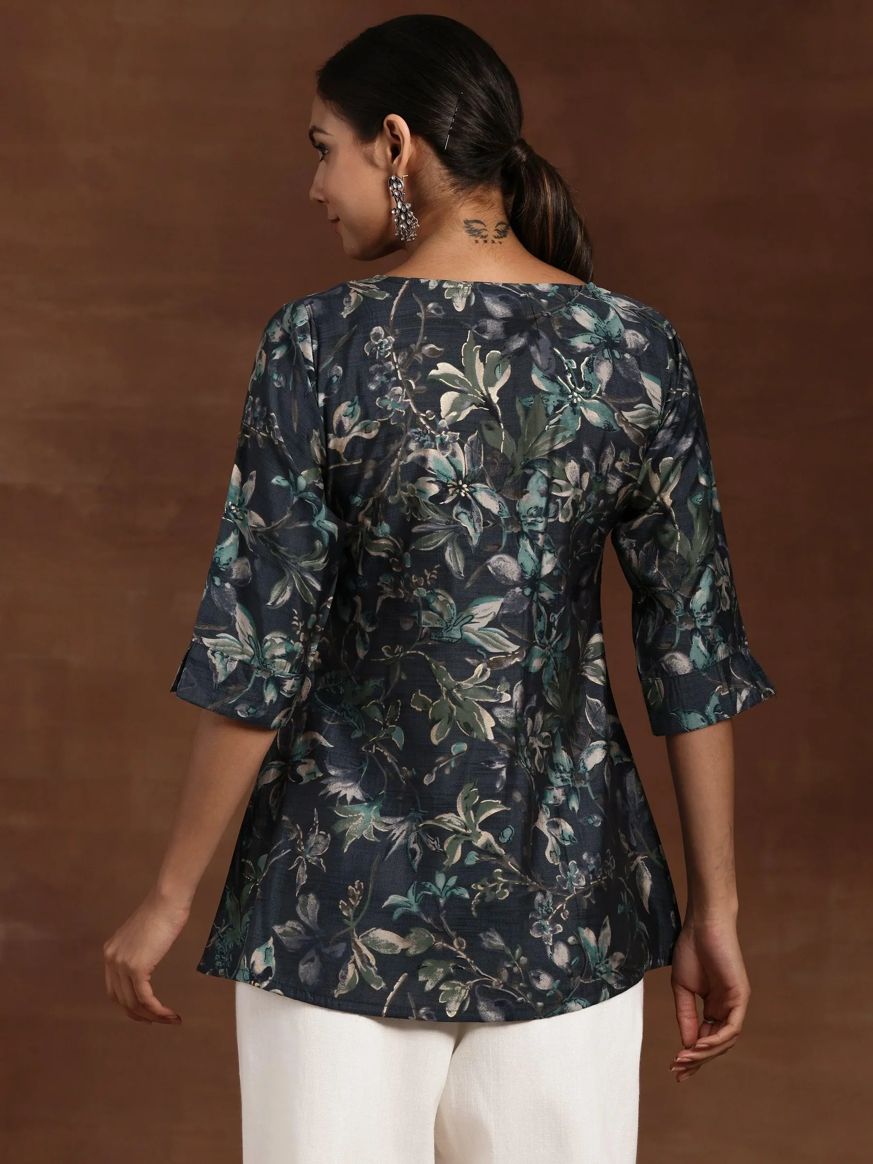 Grey Yoke Design Silk Blend A-Line Kurti