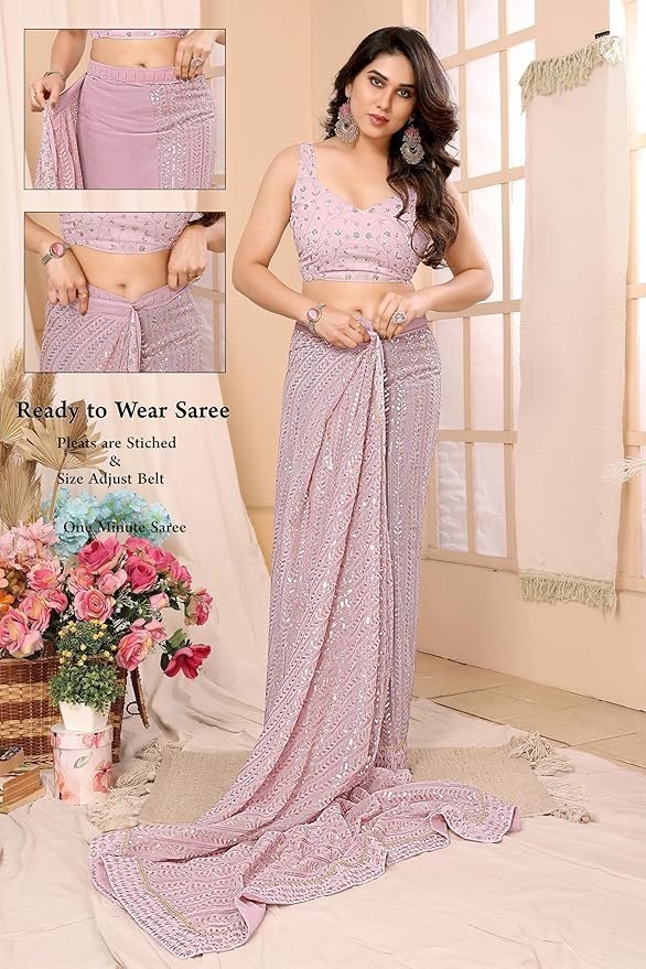 Women's Georgette Sequin Embroidery work Saree with Unstitch Blouse Piece